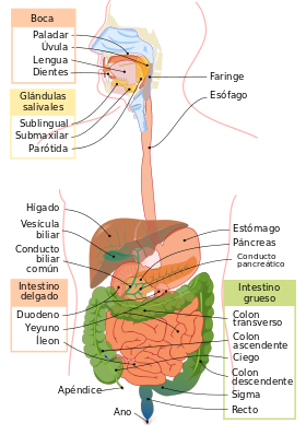 ESTRUCTURA : Esofago , estomago,higado, vesicula biliar , pancreas , intestino delgado y grueso , apendice , colon , recto , ano , boca , dientes , faringe y laringe.