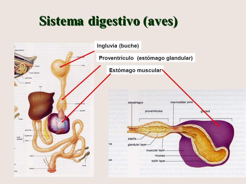 *No existen labios ni dientes, elementos que son reemplazados por el pico y el estómago muscular o molleja. *Presenta una hendidura media larga a manera de paladar que comunica con la cavidad nasal. *Cloaca |
